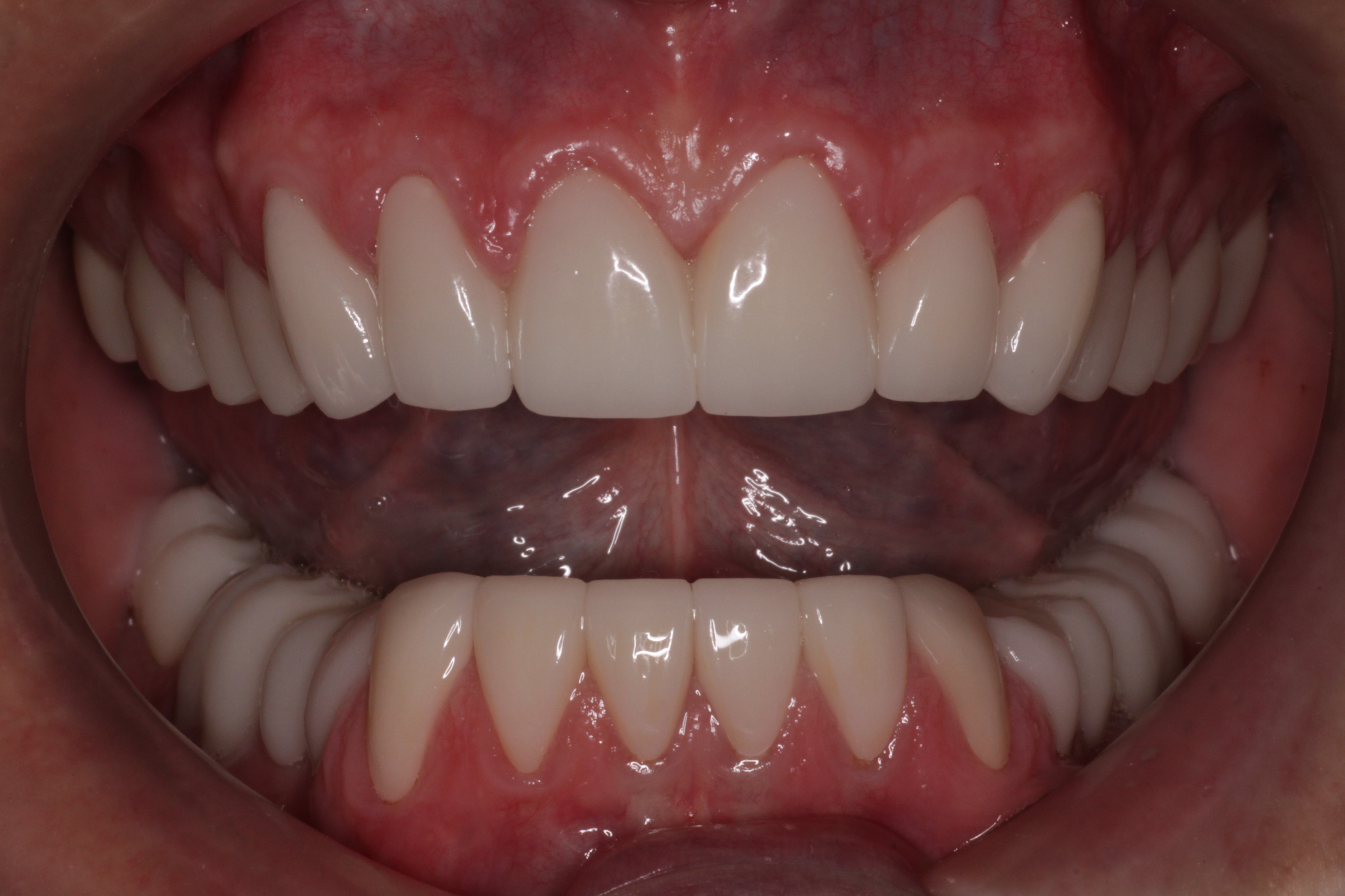 Full-mouth rehabilitation with full coverage porcelain crowns, also known as caps